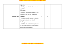 Chuẩn kiến thức, kĩ năng TT Thông Vận dụng kiến thức thức cần kiểm tra Nhận biết Vận dụng hiểu cao 1 Nguyên Nhận biết: 1 hàm