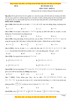 chủ yếu xoay quanh các chương nguyên hàm, tích phân, số phức, phương pháp tọa độ trong không gian.
