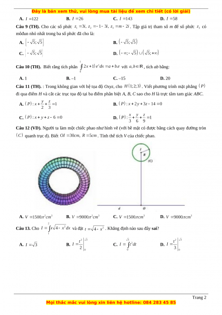 . Tính thể tích V của chiếc phao. A. B. C. D. Câu 13. Cho và đặt