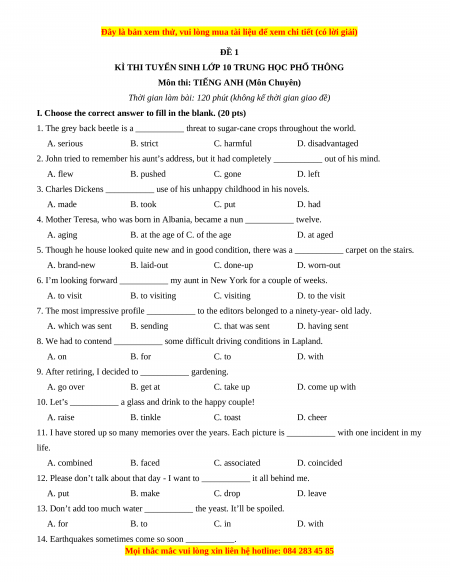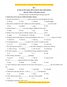 Bộ 35 đề luyện thi ôn vào 10 Tiếng Anh có đáp án
