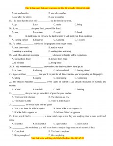 28. Have you ever experienced your mind ___________ blank during an exam? A. going B. go C. to go D. gone