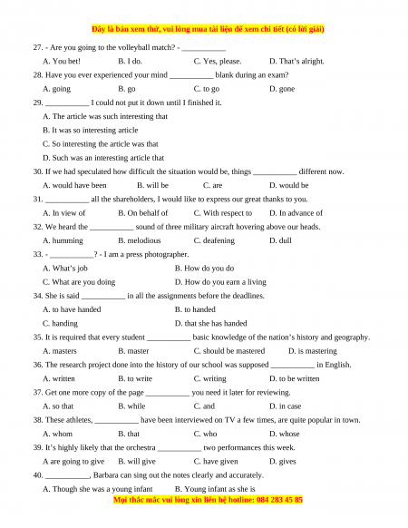 Chúng tôi đảm bảo đủ số lượng đề đã cam kết hoặc có thể nhiều hơn, tất cả có BẢN WORD, LỜI GIẢI CHI TIẾT và tải về dễ dàng.