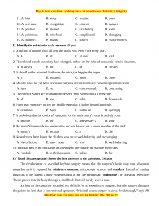 Môn thi: TIẾNG ANH (Môn Chuyên)