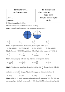 LỚP 4 - NĂM HỌC ……………. MÔN: TOÁN Lớp: 4 ...