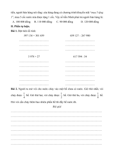Bài 2. Người ta mở vòi cho nước chảy vào một bể chưa có nước. Giờ thứ nhất, vòi 1 1 1