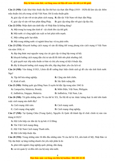 Câu 21 (NB): Cuộc khai thác thuộc địa lần thứ hai của thực dân Pháp (1919 - 1929) đã làm sâu sắc thêm
