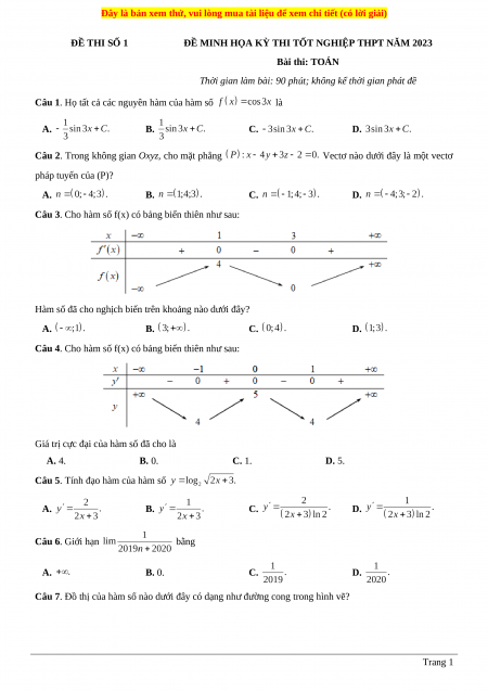 ĐỀ MINH HỌA KỲ THI TỐT NGHIỆP THPT NĂM 2023 Bài thi: TOÁN