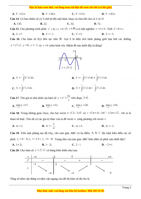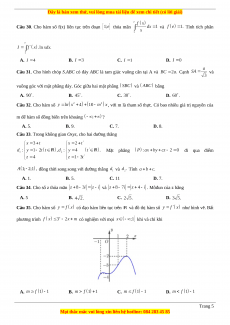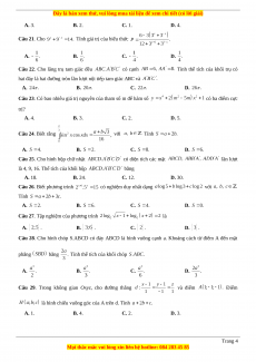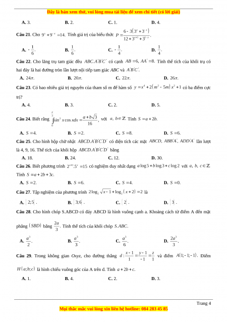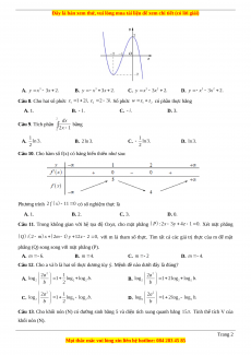 Câu 23. Có bao nhiêu giá trị nguyên của tham số m để hàm số có ba điểm cực trị? A. 4. B. 3. C. 2. D. 5. Câu 24. Biết rằng với Tính A. B. C. D.