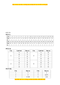 PHẦN I. Câu trắc nghiệm nhiều phương án lựa chọn. Thí sinh trả lời từ câu 1 đến câu 40.