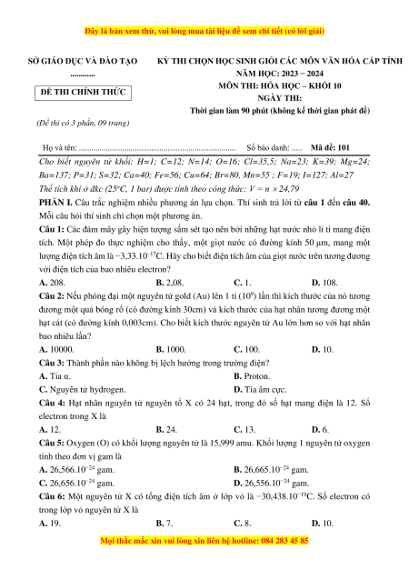 - Tailieugiaovien.com.vn giới thiệu Bộ 36 đề thi Học sinh giỏi Hóa 10 năm 2023-2024 và năm 2022-2023 có lời giải chi tiết nhằm giúp Giáo viên có thêm tài liệu tham khảo Hóa học 10.