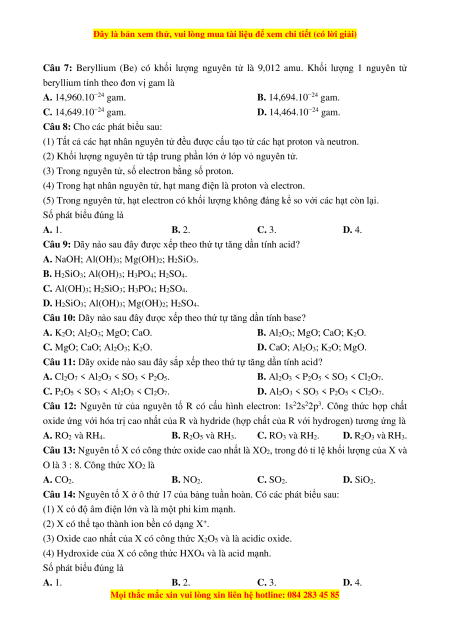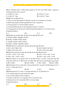 Câu 7: Beryllium (Be) có khối lượng nguyên tử là 9,012 amu. Khối lượng 1 nguyên tử