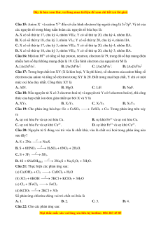 Câu 16: Một ion M3+ có tổng số hạt proton, neutron, electron là 79, trong đó số hạt mang điện