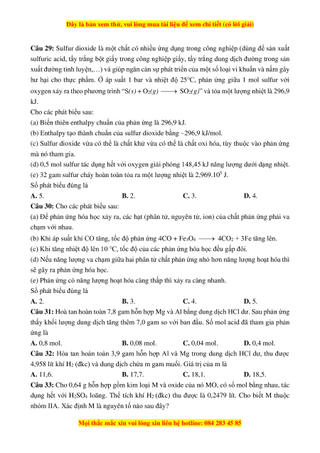 Câu 22: Cho các phản ứng sau: