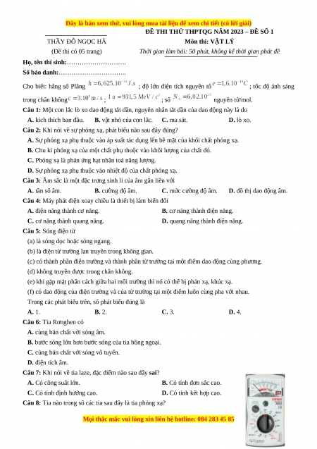 ĐỀ THI THỬ THPTQG NĂM 2023 – ĐỀ SỐ 1 THẦY ĐỖ NGỌC HÀ Môn thi: VẬT LÝ (Đề thi có 05 trang)