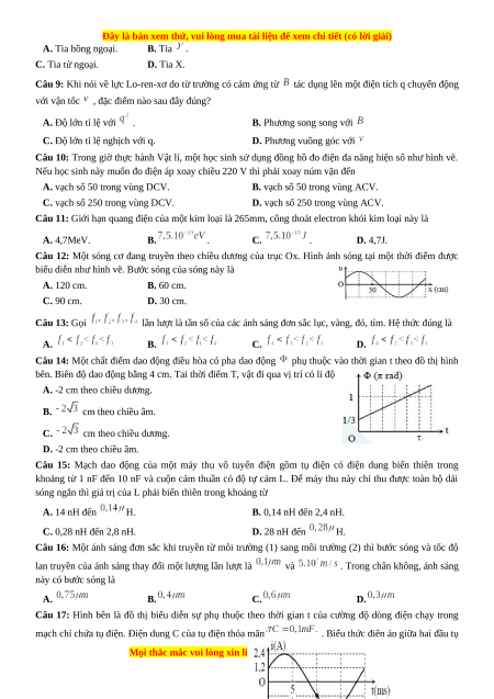 Câu 9: Khi nói về lực Lo-ren-xơ do từ trường có cảm ứng từ tác dụng lên một điện tích q chuyển động