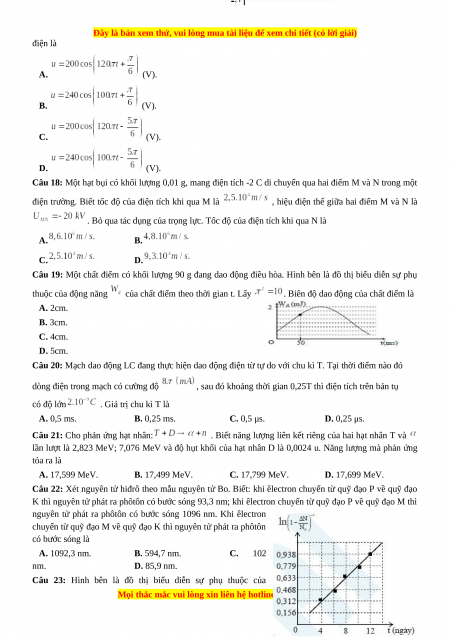 Câu 18: Một hạt bụi có khối lượng 0,01 g, mang điện tích -2 C di chuyển qua hai điểm M và N trong một
