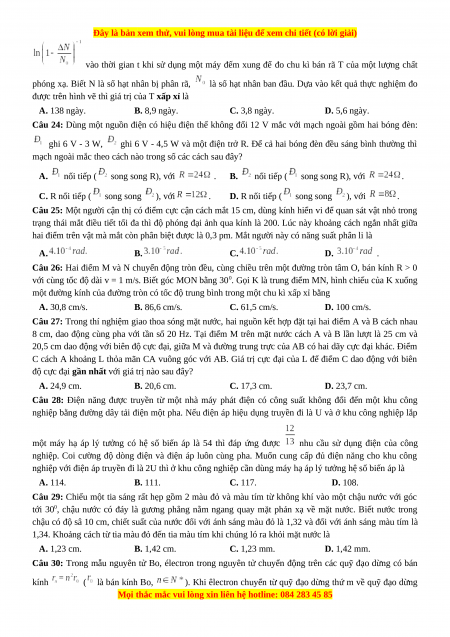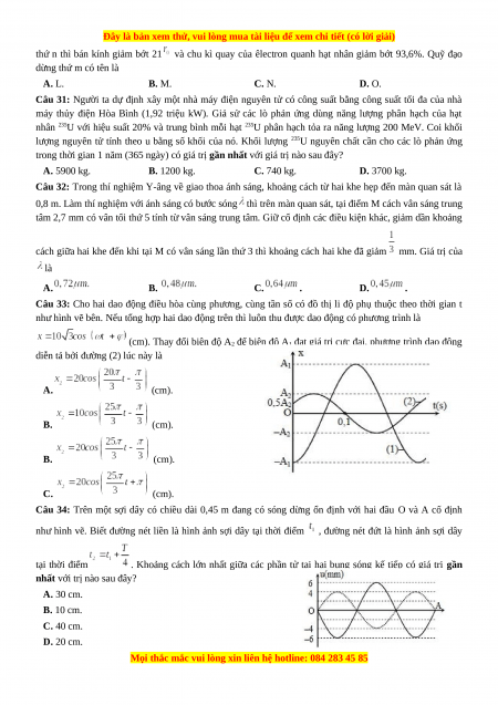 Câu 31: Người ta dự định xây một nhà máy điện nguyên tử có công suất bằng công suất tối đa của nhà