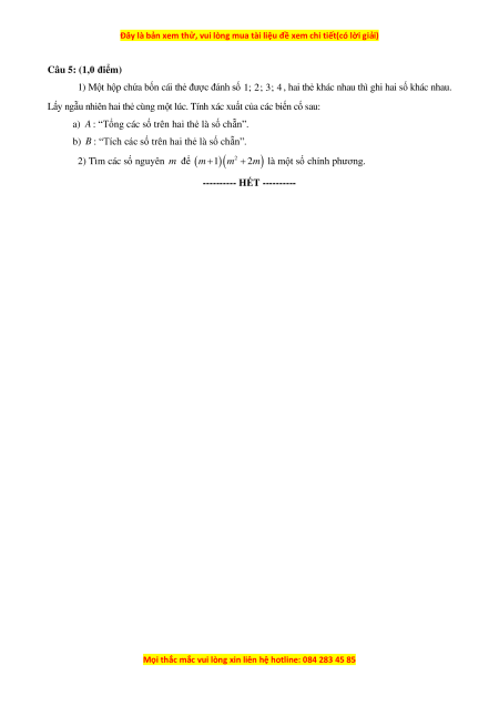 1) Một hộp chứa bốn cái thẻ được đánh số 1; 2; 3; 4 , hai thẻ khác nhau thì ghi hai số khác nhau.