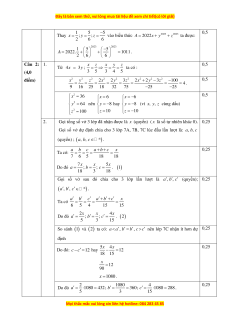 A = 2022x + y + z ta được: 2 6 6 2023 2023 1 5 5 − A = 2022. + + =1011 . 2 6 6 Câu 2: 1. x z x y z 0,5 Từ 4x = 3y ; = = = ta có : (4,0 3 5 3 4 5 điểm) 2 2 2 2 2 2 2 2 2 x y z 2x 2 y 3z