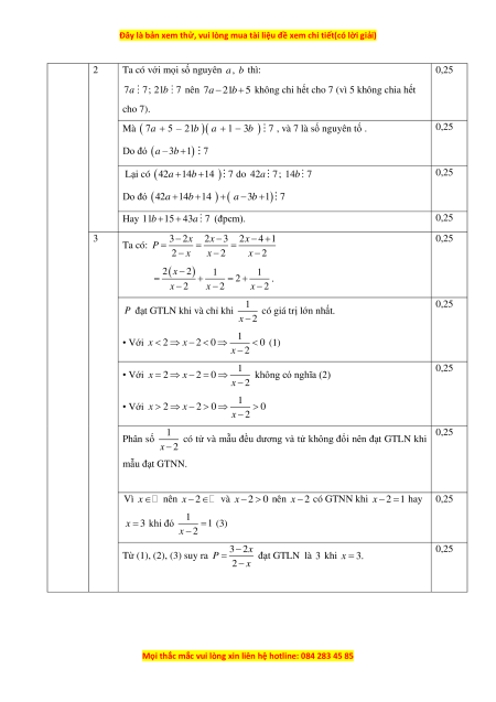 3) Cho biểu thức P = 2− với x là số nguyên. Tìm giá trị lớn nhất của P . x