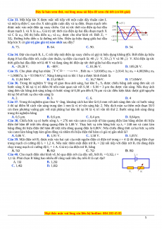 Câu 1. Photpho có chu kỳ bán rã là 14 ngày. Ban đầu có 70 g thì sau 4 ngày lượng còn lại là bao nhiêu? A. 57,324 kg B. 57,423 g C. 55,231 g D. 57,5 g