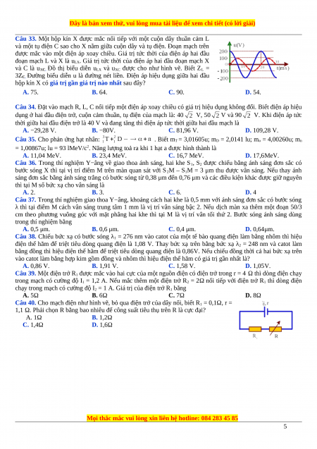 Câu 33. Một hộp kín X được mắc nối tiếp với một cuộn dây thuần cảm L