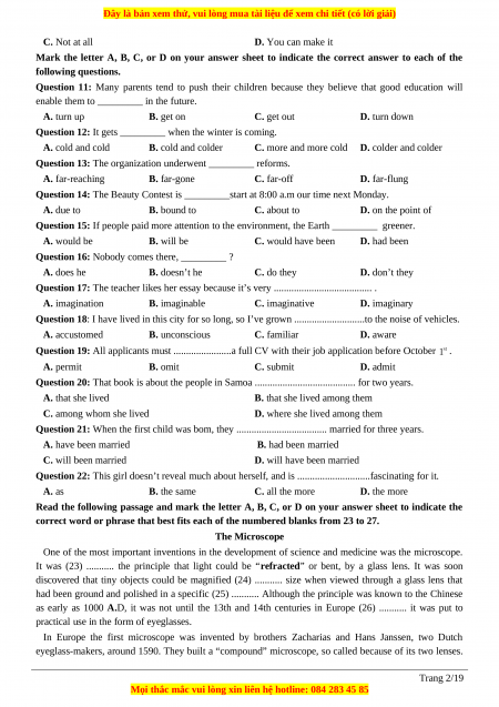 correct word or phrase that best fits each of the numbered blanks from 23 to 27. The Microscope