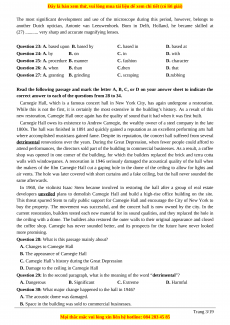 Question 18: I have lived in this city for so long, so I’ve grown ............................to the noise of vehicles. A. accustomed B. unconscious C. familiar D. aware