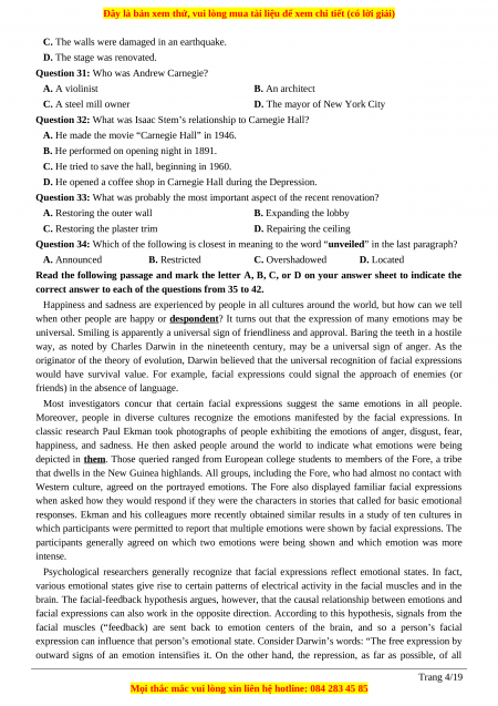 Question 35. The word “despondent” in the passage is closest in meaning to .............................