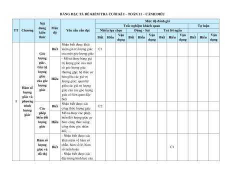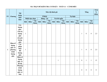 MA TRẬN ĐỀ KIỂM TRA CUỐI KÌ I – TOÁN 11 – CÁNH DIỀU Tỉ lệ