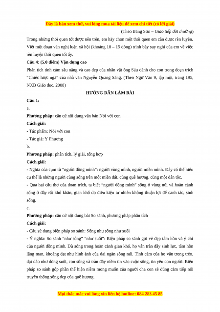 Phương pháp: căn cứ nội dung văn bản Nói với con