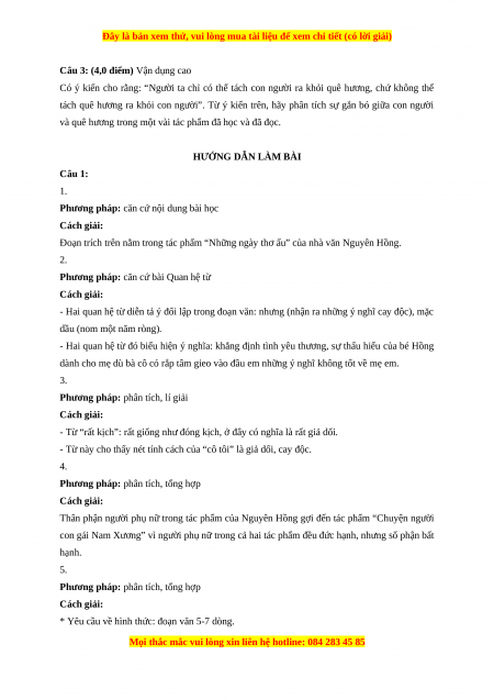 Đoạn trích trên nằm trong tác phẩm nào của nhà văn Nguyên Hồng (0,5 điểm) 2. Thông hiểu