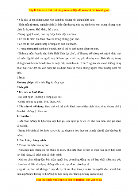 Viết đoạn văn ngắn (5-7 dòng) để nói lên cảm nhận của anh/chị về tình mẫu tử trong nghịch cảnh (1,0 điểm)