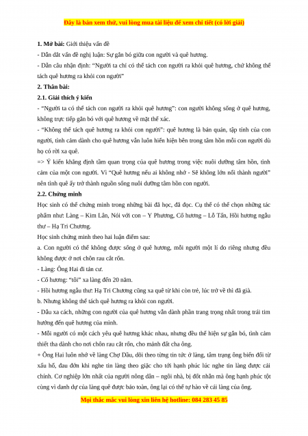 tách quê hương ra khỏi con người”. Từ ý kiến trên, hãy phân tích sự gắn bó giữa con người