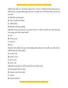 D. Tất cả các lĩnh v c t ự rên. Câu 8: Các ch t ấ đư c ợ t o ạ ra trong m t ộ t ế bào và xu t ấ ra bên ngoài t ế bào s ẽ đi qua A. lư i ớ n i ộ ch t ấ và b m ộ áy Golgi. B. nhân và b m ộ áy Golgi. C. lư i ớ n i ộ ch t ấ và lysosome. D. nhân và ti th . ể