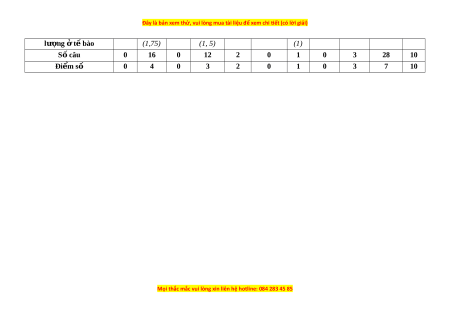 lư ng ợ ở t bào ế (1,75) (1, 5) (1) S câu ố 0 16 0 12 2 0 1 0 3 28 10 Đi m ể số 0 4 0 3 2 0 1 0 3 7 10