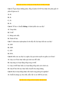 Câu 5: Ơ giai đo n ạ đư ng ơ phân, t ng ô s ố phân t ử ATP thu đư c ơ khi phân gi i ả 10 phân t g ử lucose là A. 40. B. 28. C. 20. D. 36. Câu 6: T bào ế vi khu n