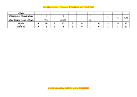 t bào. ế Chư ng ơ 4: Chuy n hóa ể 6 5 1 1 11 3,75 năng lư ng t ợ rong t b ế ào. (1,5) (1,25) (1) S câu ố 0 16 0 12 2 0 1 0 3 28 10 Đi m ể số 0 4 0 3 2 0 1 0 3 7 10