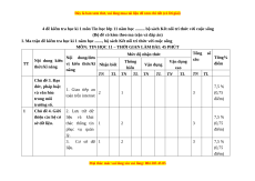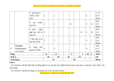 4. Hệ quản trị 7,5 % CSDL và hệ 2 1 3 (0,75 csdl. điểm) 20% 5. Hệ CSDL 2 2 1a 4 1a (2,0 quan hệ. điểm) 6. SQL – ngôn 20% ngữ truy vấn có 3 1 1b 4 1b (2,0 cấu trúc. điểm) 20% 7. Bảo mật và an 3 1 1 4 1 (2,0 toàn hệ CSDL. điểm) Chủ đề 5. 10% 8. Công việc 2 Hướng nghiệp 2 2 4 (1.0 quản trị CSDL. với Tin học. điểm) Tổng 16 12 2 1 28 3 100% Tỉ lệ % 40 30 20 10 (10 Tỉ lệ chung 70 30 điểm) Lưu ý: