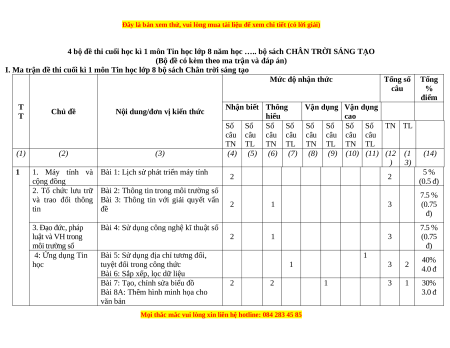 II. Bốn đề thi minh họa thi cuối học kì 1 môn Tin học lớp 8 bộ sách CHÂN TRỜI