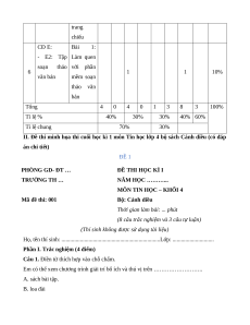 II. Đề thi minh họa thi cuối học kì 1 môn Tin học lớp 4 bộ sách Cánh diều (có đáp án chi tiết) ĐỀ 1 PHÒNG GD- ĐT … ĐỀ THI HỌC KÌ I TRƯỜNG TH … NĂM HỌC ………...