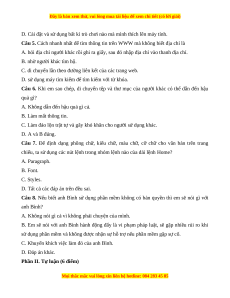 Câu 7. Để định dạng phông chữ, kiểu chữ, màu chữ, cỡ chữ cho văn bản trên trang