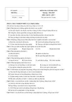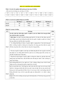 Quyền và nghĩa vụ của công dân 1 5 2 2 (4 ý - trong GĐ (1,0đ) 1,0đ) Tổng số câu hỏi 20 2 2 Tổng số điểm 5,0 2,0 3,0 Tỉ lệ (%) 50% 20% 30% SỞ GD&ĐT: ………….