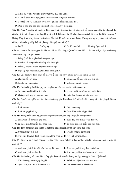 Câu 14: Quyền và nghĩa vụ của công dân trong gia đình được thể hiện rõ nhất trong văn bản pháp luật nào dưới đây? A. Luật trẻ em. B. Luật lao động.