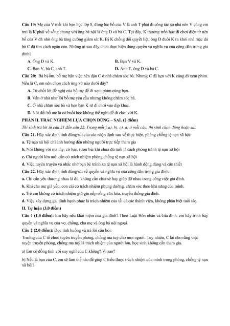 Câu 19: Mẹ của V mất khi bạn học lớp 8, đúng lúc bố của V là anh T phải đi công tác xa nhà nên V cùng em