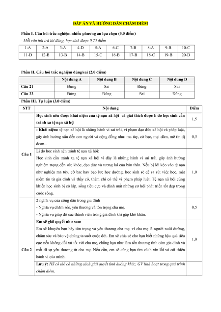 Câu 1 (1,5 điểm): Theo em tệ nạn xã hội là gì. Giải thích vì sao học sinh cần tránh xa tệ nạn xã hội.
