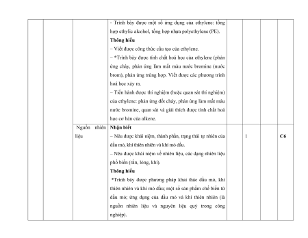 – Nêu được khái niệm về alkene. 1 C5