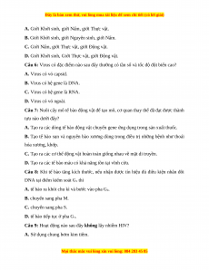 Câu 6: Virus có đặc điểm nào sau đây thường có tần số và tốc độ đột biến cao?