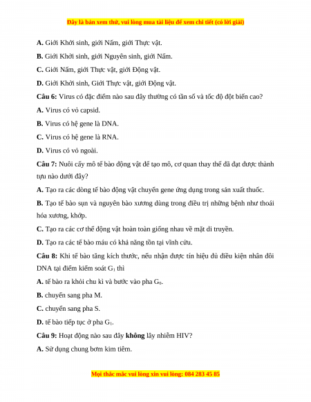 Câu 5: Vi sinh vật thuộc những giới nào trong hệ thống phân loại 5 giới?