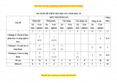 MA TRẬN ĐỀ KIỂM TRA HỌC KÌ 2 SINH HỌC 10 MỨC ĐỘ ĐÁNH GIÁ Tổng Nhận biết Thông hiểu Vận dụng Vận dụng cao Tổng số câu điểm Chủ đề Tự Trắc Tự Trắc Tự Trắc Tự Trắc Tự Trắc luận nghiệm luận nghiệm luận nghiệm luận nghiệm luận nghiệm 1 2 3 4 5 6 7 8 9 10 11 12